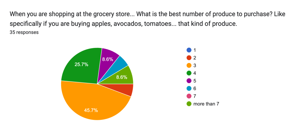 Looks like no one buys just 1 avocado! The 2 and 6 slice both had 2 responses and 5 and more than 7 were 3 responses. It looks like most people buy 3 avocados at nearly 46%. Mind blowing 🤯🤯!